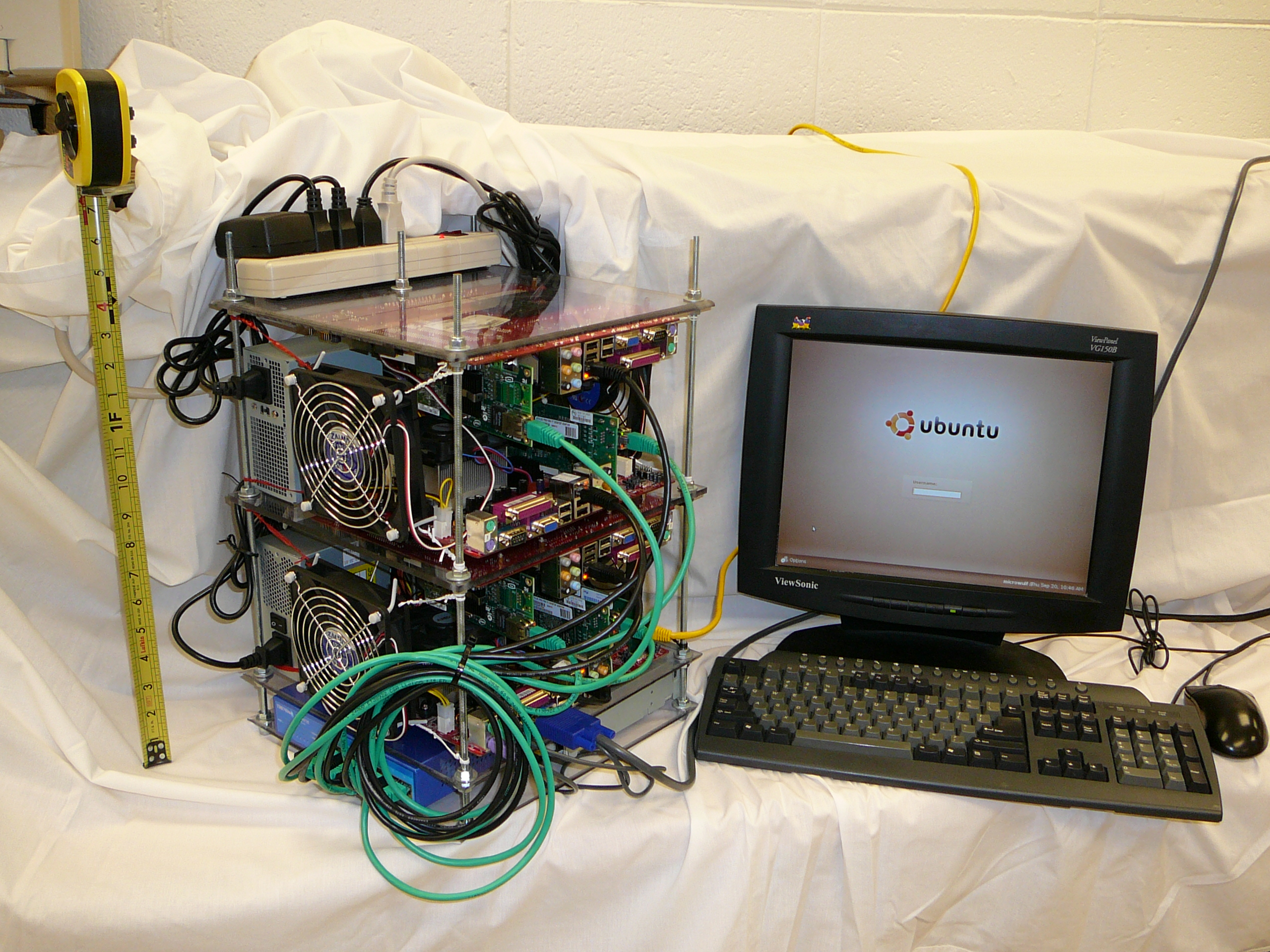 In fall 2005, Adams gave a talk at the Oberlin Conference on Computation and Modeling (OCCAM). Little Fe was also being demonstrated at the conference. Student Tim Brom accompanied Adams and the two began to discuss the pros and cons of compact clusters like Little Fe. The pros included small size and portability, the main con was limited performance -- that version of Little Fe used 1 GHz CPUs and 100 Mbps Ethernet, making it a network-bound cluster.